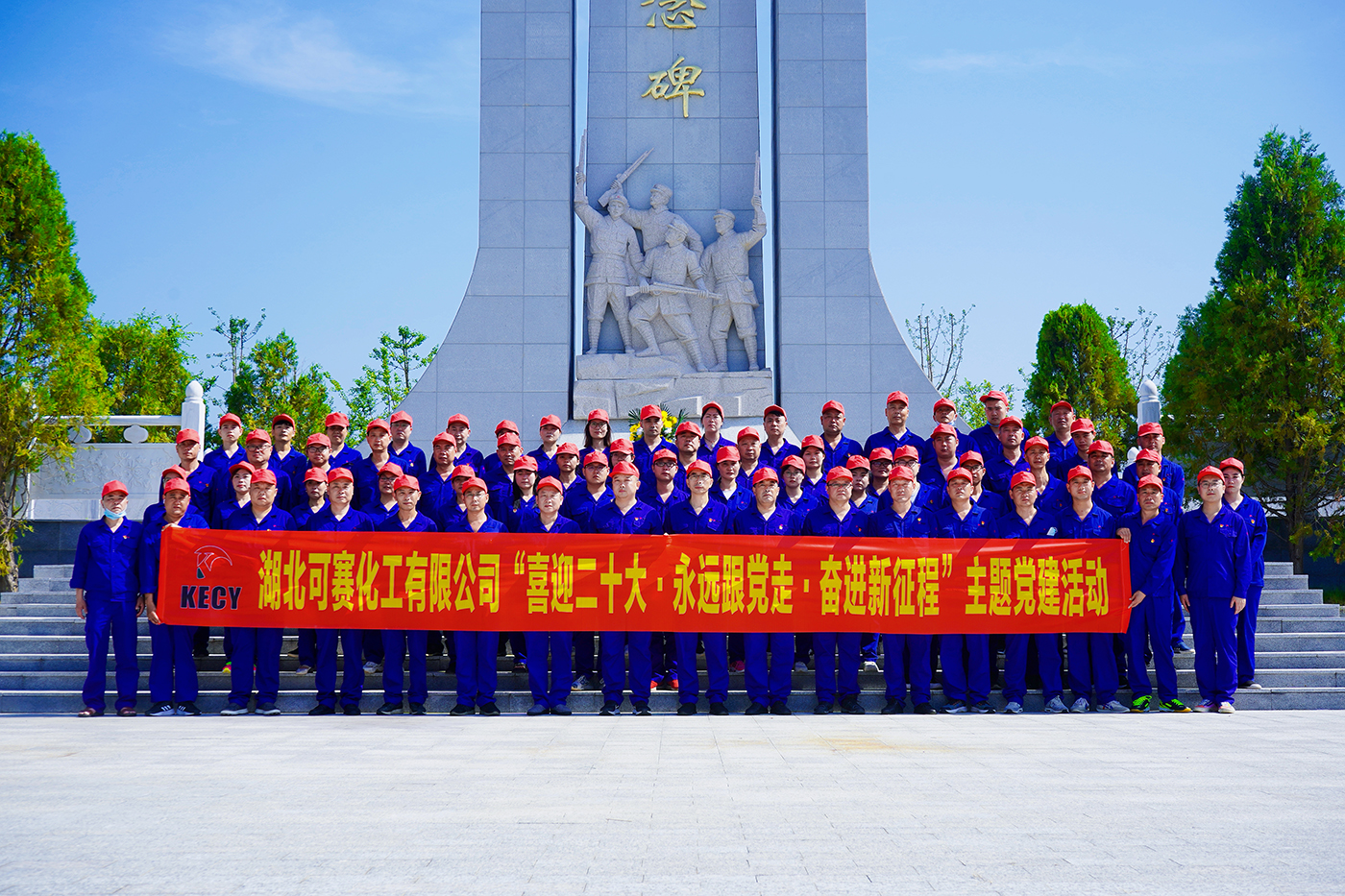 在烈士纪念碑前,由肖世军和刘俊梅两名同志作为代表敬献花篮,董事长蔡敬明同志上前梳理挽联,随后员工向革命烈士纪念碑三鞠躬,并依次向前献花,再绕纪念碑一圈,瞻仰浮雕。最后由许文军同志带领全员重温入党誓词。