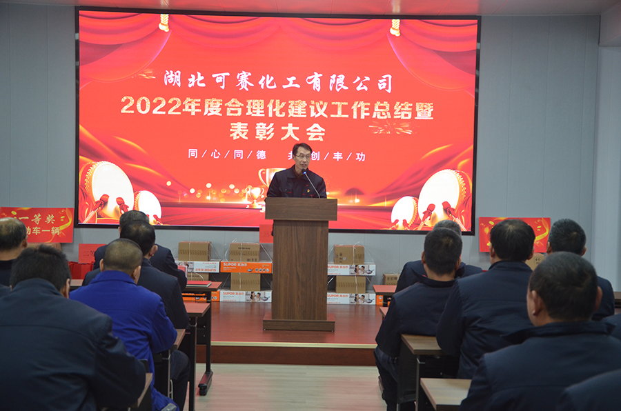 2月9日下午14:45,可赛公司2022年度合理化建议工作总结表彰暨抽奖活动在三楼多功能厅隆重举行。公司党委副书记、纪委书记、工会主席王宜波向大会报告了公司2022年合理化建议工作总体情况,总结了亮点,指出了问题,对2023年合理化建议工作思路措施进行了布置安排。