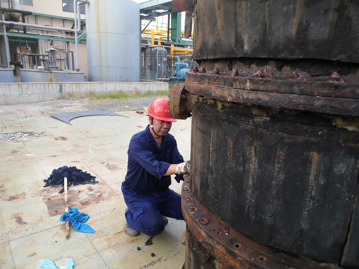 8月17日至18日,氯车间氯氢处理工区为期两天的泡罩塔清洗检修工作顺利完成。本次对泡罩塔内的酸泥、有机物等杂质进行了彻底清理,对产生的废水进行了有效收集处理,既保证了检修质量,又未发生环保污染问题。 为安全、优质、高效地完成检修任务,氯车间检修人员不畏炎热、苦战高温、加班加点,再次展现了不怕苦、不怕累的优良作风。