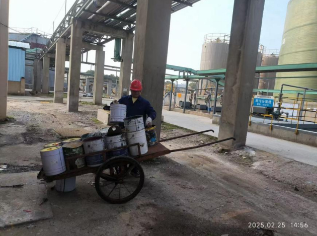 油漆桶属于危险废物,桶内残留物处理不当会对环境及人体造成不同程度的危害,乱丢乱放也影响美观。对此。现场管理组对油漆桶进行了统一管理,将油漆桶收集后集中移交给安全环保部当做危废处理。同时,加强现场管理,在班前会加强宣传,对于生产区域发现的饮料水瓶、检修结束残留的小螺丝、容易忽视的卫生死角等要及时清理,始终保持现场整洁。另外,常态化开展“5S”定置管理工作,班组对各值班室、桌子、水杯、清扫工具等用品,统一做好标识,定置定位分类摆放,营造干净舒适的工作环境。