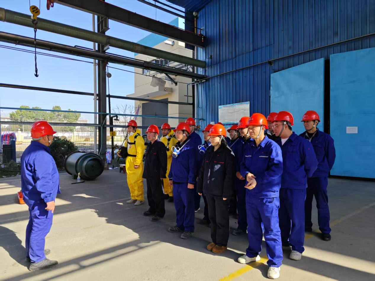 演练前,公司生产部联合各车间以及安全环保部等多部门,成立专项演练工作组,结合液氯特性及厂区实际布局,完善《氯气钢瓶泄漏逃生疏散演练方案》,明确报警响应、人员疏散、现场处置等各环节职责分工。通过专题培训、桌面推演等形式,组织参演人员学习液氯泄漏危害特性、防护装备使用方法、应急处置流程等知识,确保人人熟悉预案、掌握技能。同时,全面检查防化服、空气呼吸器、氯气中和装置、应急照明等救援物资,更换过期耗材,确保装备处于最佳状态,为演练顺利开展奠定坚实基础。